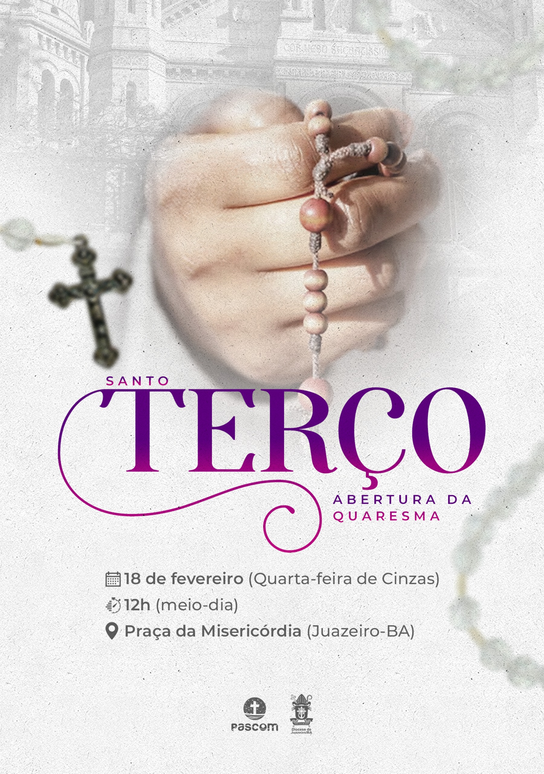 Tradicionalmente, a Forania Nossa Senhora das Grotas realiza o terço na “Praça da Misericórdia” em Juazeiro (BA) ao meio-dia (12h) para abrir o período quaresmal com foco na oração, jejum e penitência.