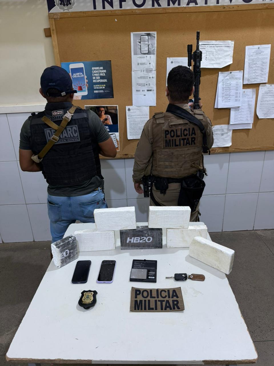 Como a abordagem já se daria em território baiano, a equipe da PETO 75 da Polícia Militar da Bahia foi acionada e realizou a interceptação do veículo. Na ação, os agentes encontraram a droga sendo transportada no automóvel conduzido pelo investigado.