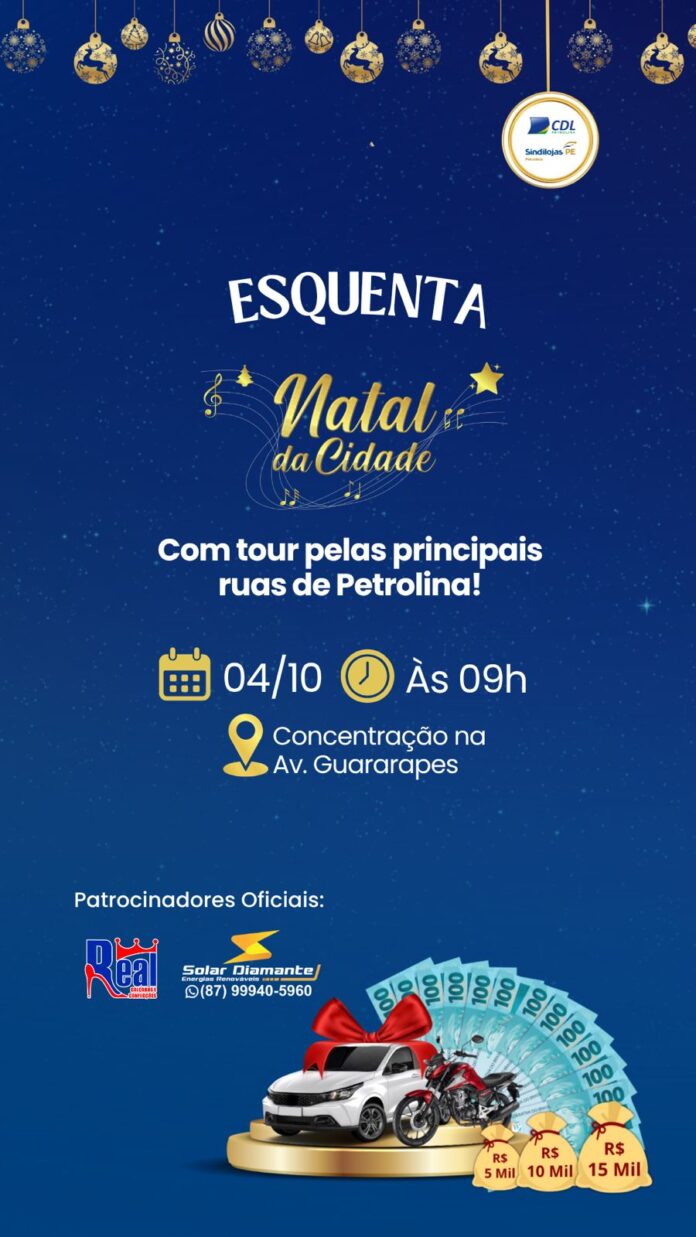 O comércio de Petrolina já se prepara para uma das datas mais importantes do ano: o Natal. E para marcar mais uma ação da Campanha Natal da Cidade, a Câmara de Dirigentes Lojistas (CDL) de Petrolina e o Sindicato do Comércio Varejista (Sindilojas), promovem neste sábado, 04 de outubro, um “Esquenta” que apresentará ao público, os prêmios da grande promoção e trará uma novidade: os cupons já estarão disponíveis para os clientes das lojas participantes.