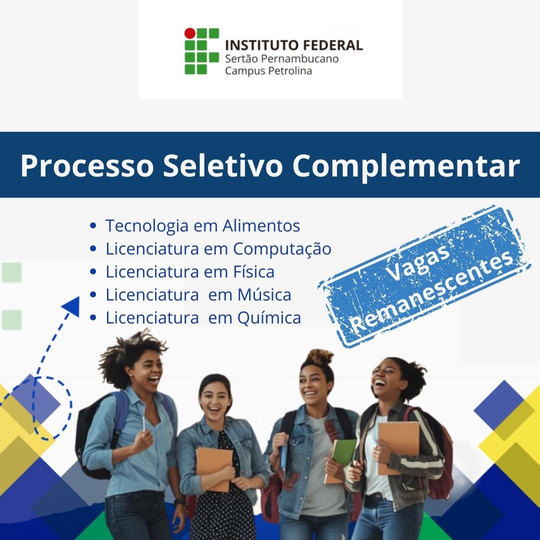 O campus Petrolina do Instituto Federal do Sertão Pernambucano (IFSertãoPE) informa que, no período de 27 de fevereiro a 8 de março de 2026, estão abertas as inscrições para o preenchimento de 96 vagas remanescentes nos cursos superiores de Tecnologia em Alimentos e nas Licenciaturas em Computação, Física, Música e Química, com ingresso no primeiro e segundo semestres de 2026. Para concorrer às vagas disponíveis, os candidatos deverão preencher o formulário eletrônico disponível no site do campus, desde que tenham participado de qualquer edição do Exame Nacional do Ensino Médio (Enem).
