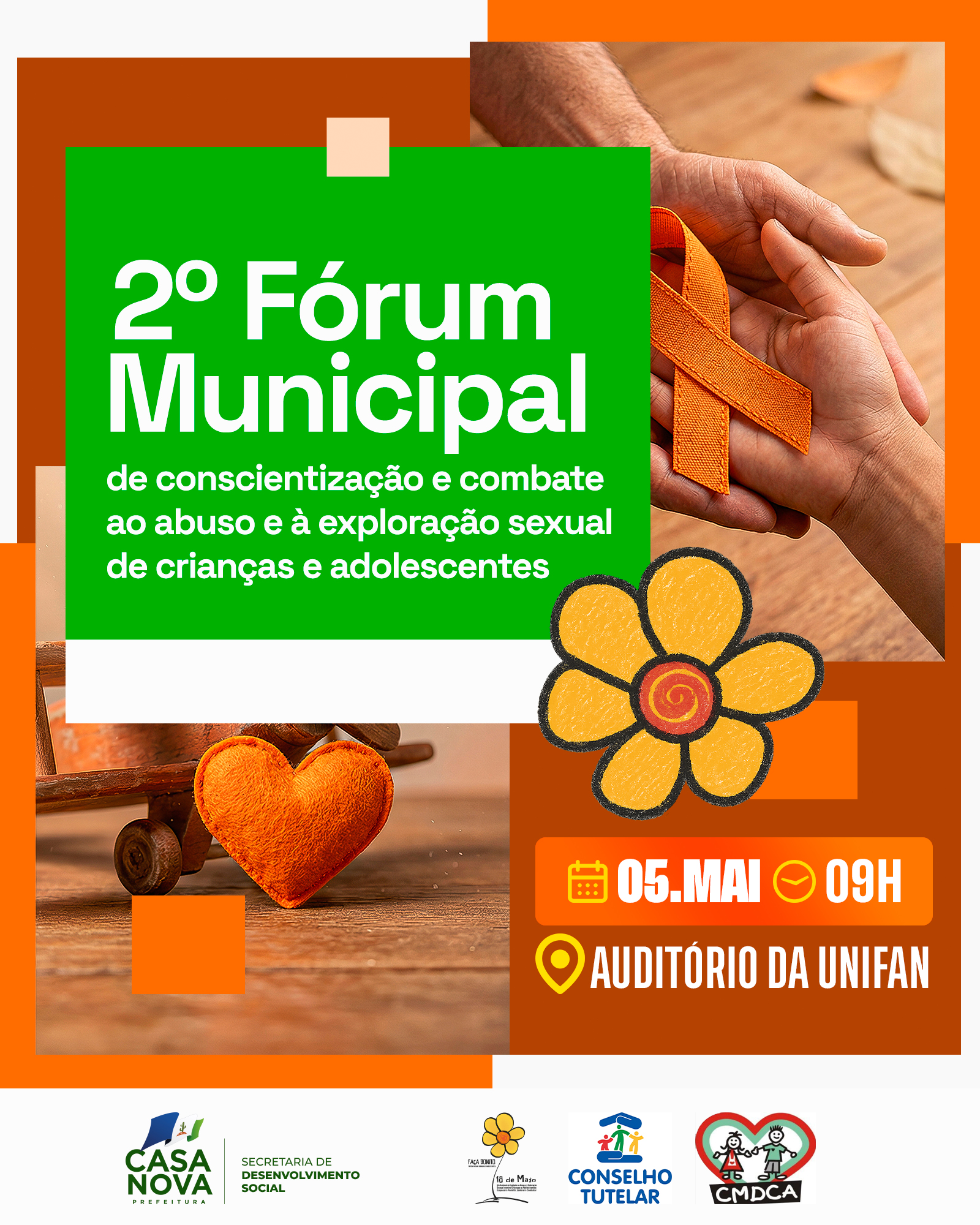 No dia 5 de maio, a Secretaria de Desenvolvimento Social, Igualdade e Combate à Fome realiza, junto à Prefeitura de Casa Nova, a segunda edição do Fórum Municipal de Conscientização e Combate ao Abuso e à Exploração Sexual de Crianças e Adolescentes. O encontro acontecerá no auditório da Unifan, às 9h, e reunirá profissionais da rede de proteção, autoridades e a sociedade civil para discutir estratégias de enfrentamento a esse tipo de violência.