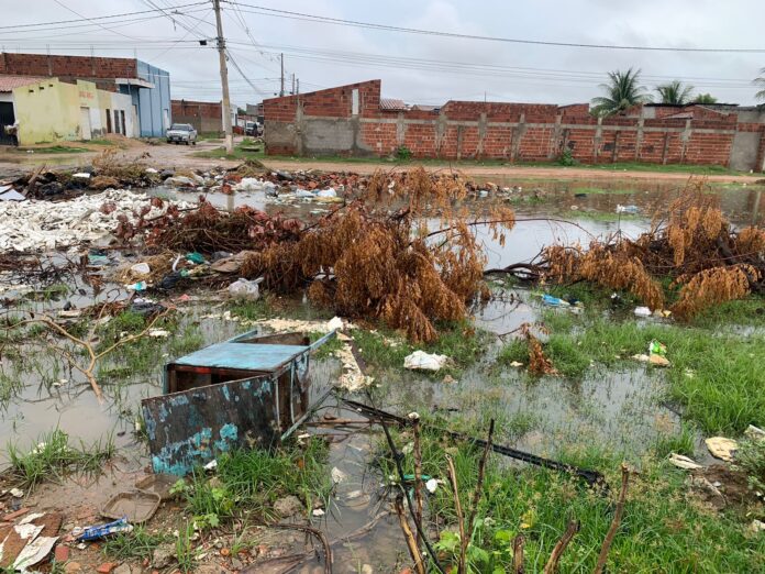 “Isso aqui não é só água da chuva. O solo está encharcado de esgoto. É um problema que existe independente de chover ou não. Poderia ser uma praça, um espaço organizado para a comunidade, mas está abandonado”, relatou.