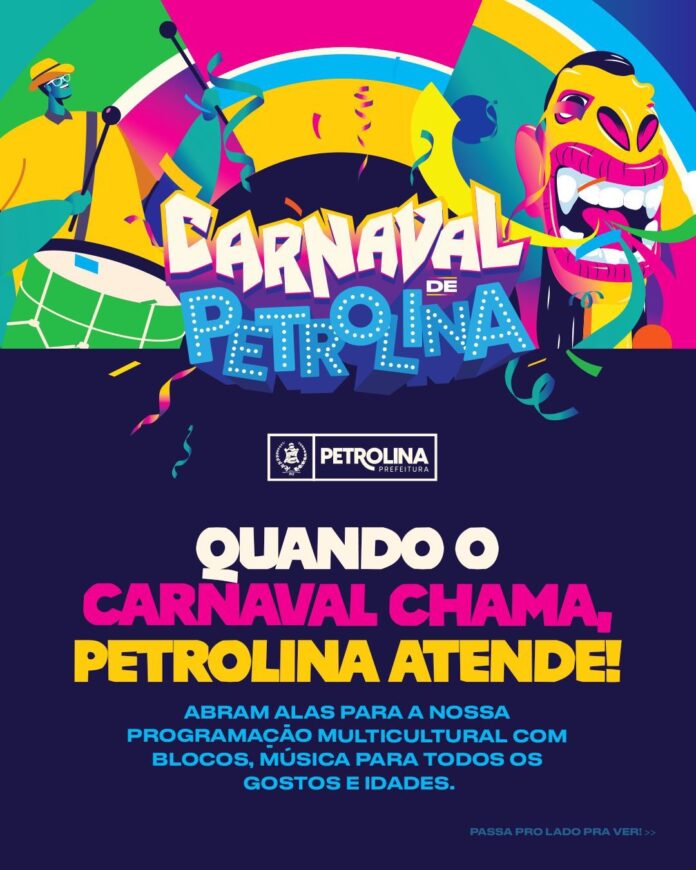 A Prefeitura de Petrolina, por meio da Secretaria de Desenvolvimento Econômico, Turismo e Inovação, divulgou nesta quarta-feira (04) a programação oficial do Carnaval 2026. Este ano, a festa traz como tema “Abram alas para a folia”. A tradicional festa popular será realizada entre os dias 14 e 17 de fevereiro, reunindo famílias, foliões e turistas em diversos pontos da cidade.