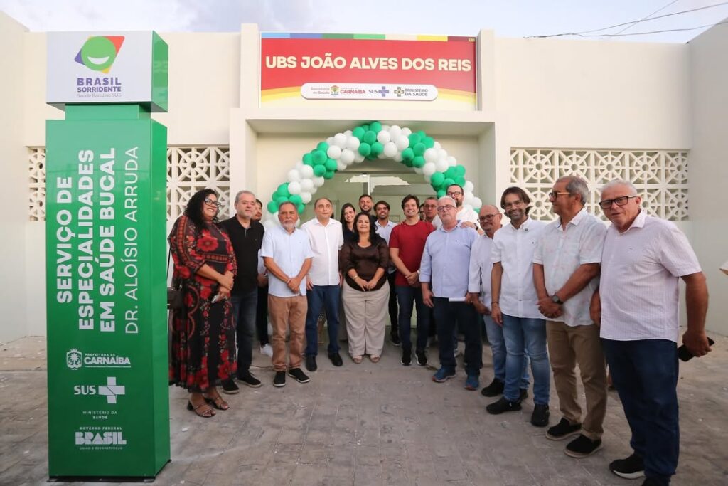 Na sequência, a comitiva seguiu para o centro da cidade, onde foi entregue o Serviço de Especialidades em Saúde Bucal Dr. Aloísio Arruda. O novo serviço funciona na UBS João Alves dos Reis, em frente ao pátio de eventos Milton Pierre, e faz parte do programa federal Brasil Sorridente, qualificando o padrão do atendimento odontológico no município.
