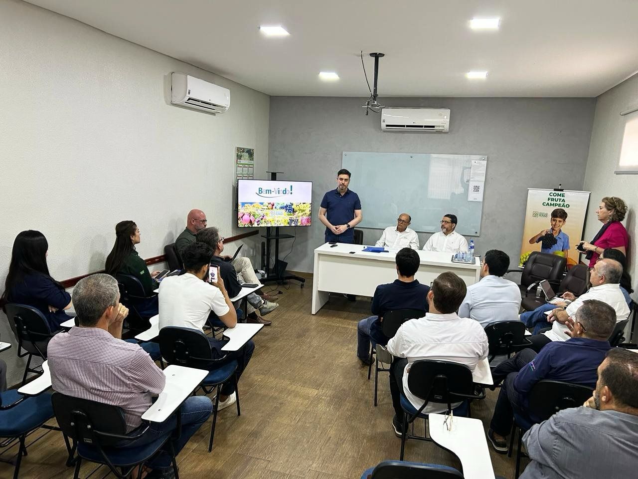 O evento foi aberto pelo presidente do Sindicato dos Produtores Rurais de Petrolina (SPR), Jailson Lira, e contou com a participação de produtores, exportadores de manga e uva e o presidente da Associação Brasileira dos Produtores Exportadores de Frutas e Derivados (Abrafrutas), Guilherme Coelho.