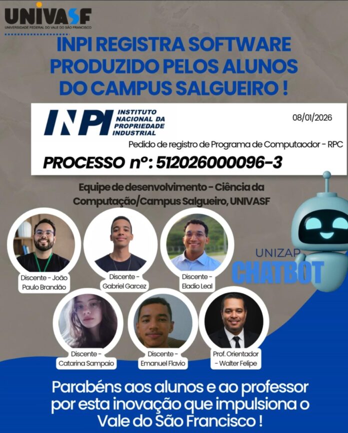 Estudantes do curso de Ciência da Computação do Campus Salgueiro da Universidade Federal do Vale do São Francisco (Univasf) desenvolveram o UniZap, um chatbot que utiliza Inteligência Artificial para facilitar o acesso a informações acadêmicas e apoiar a rotina dos estudantes da instituição. O software recebeu registro do Instituto Nacional da Propriedade Industrial (INPI) e funciona como um assistente virtual disponível 24 horas por dia, integrado ao WhatsApp.