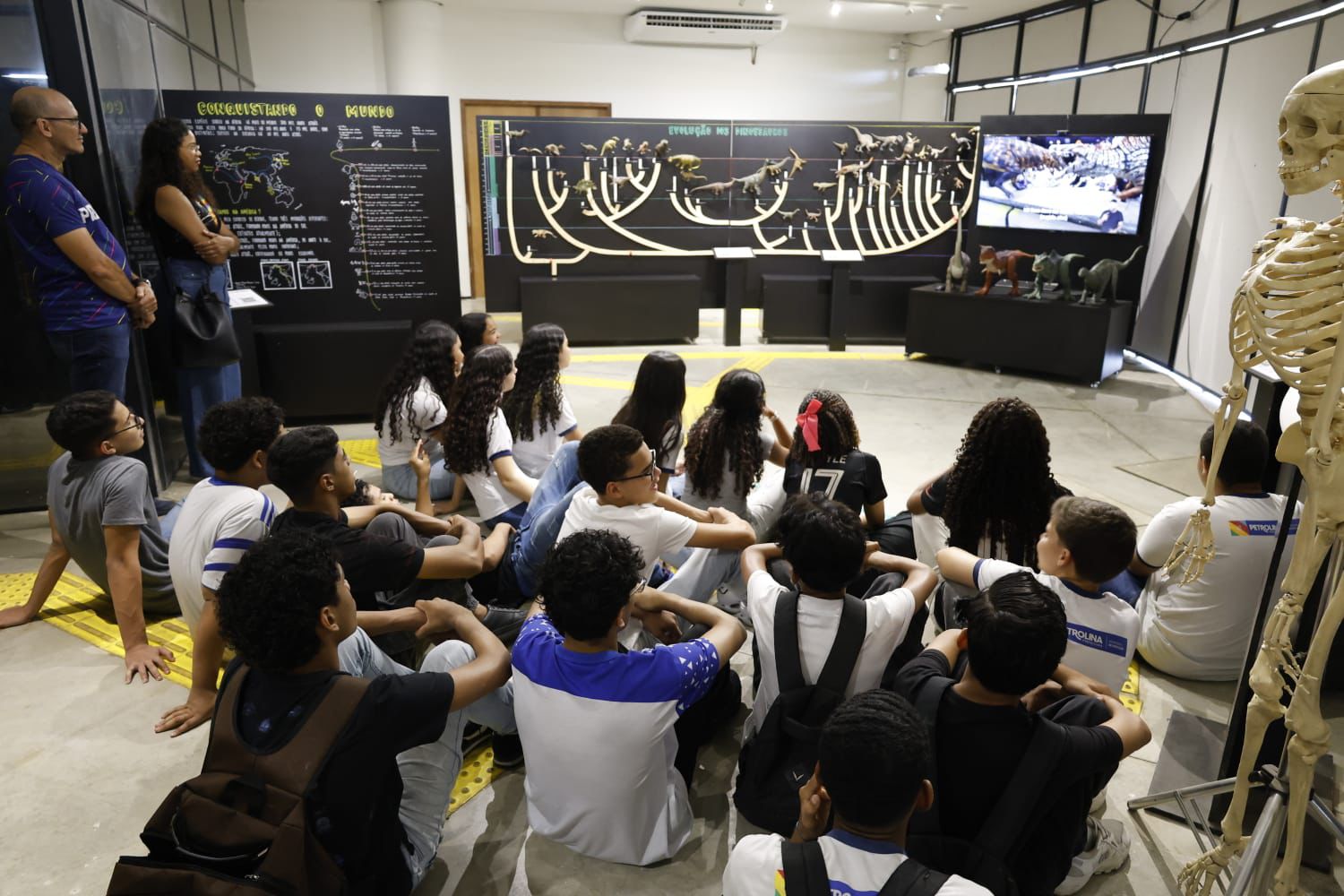 Já na quarta-feira (5), estudantes do 9º ano da Escola Municipal de Educação em Tempo Integral Juarez Clemente Canejo participaram de uma visita ao Espaço Arte, Ciência e Cultura. Durante a atividade, os jovens puderam observar fósseis, compreender melhor o desenvolvimento do universo e das espécies, realizar experimentos, entre outras vivências. O momento foi marcado por animação e curiosidade, em uma aula dinâmica que despertou o interesse dos estudantes. É o que confirma Gustavo Silva. “Achei muito interessante porque a gente teve um acesso visual e mais prático. Foi muito legal a forma como a gente aprendeu aqui”, comenta o estudante.