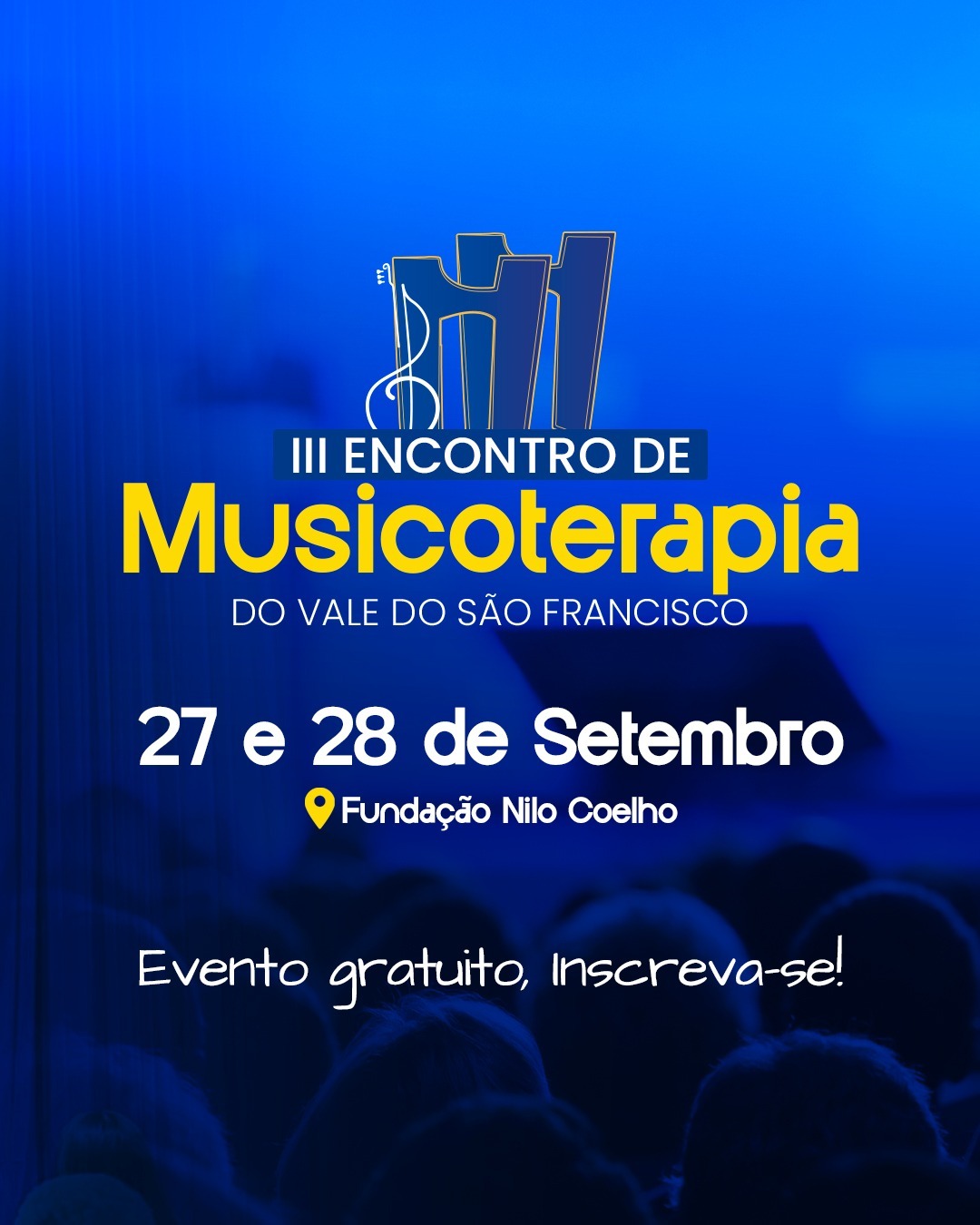 Fortalecendo o papel da música como ferramenta de cuidado, inclusão e transformação social, a Fundação Nilo Coelho, com o apoio da Secretaria Municipal de Educação, Cultura e Esporte (SEDUCE), realizará o III Encontro de Musicoterapia. Voltado para famílias atípicas, profissionais de saúde, músicos, educadores e toda a comunidade, o evento contará com diversas atividades nos dias 27 e 28 de Setembro, na sede da instituição.