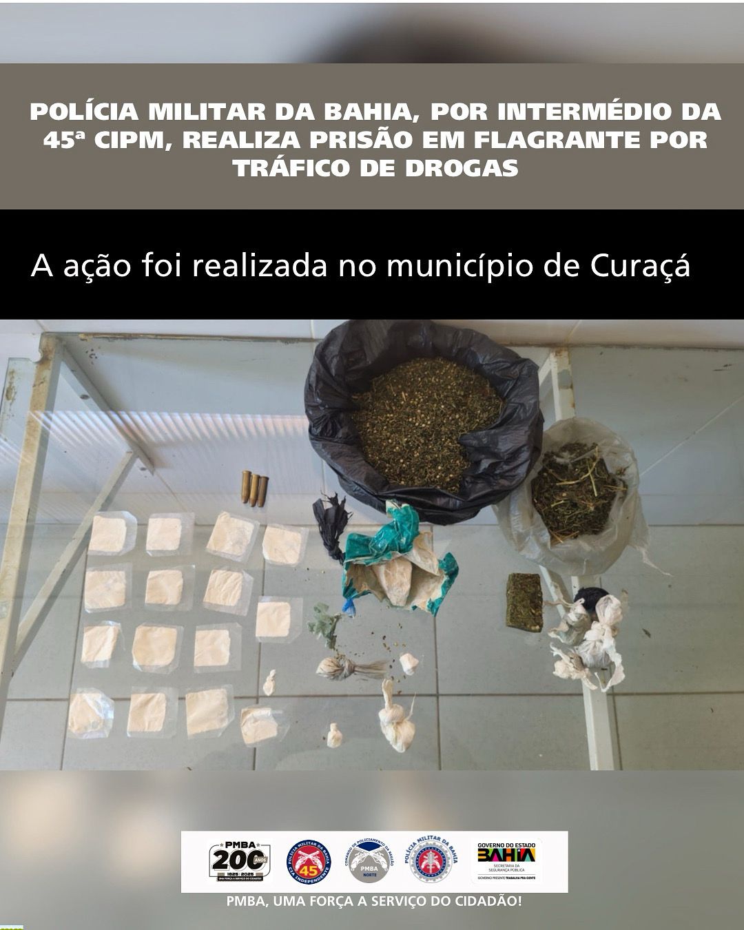 Na manhã desta quarta-feira (29), após intensificação do policiamento, policiais militares da 45ª Companhia Independente da Polícia Militar (45ª CIPM) realizaram uma ação que resultou na prisão em flagrante de um homem suspeito de tráfico de drogas, no bairro Alto da Lora, no município de Curaçá.