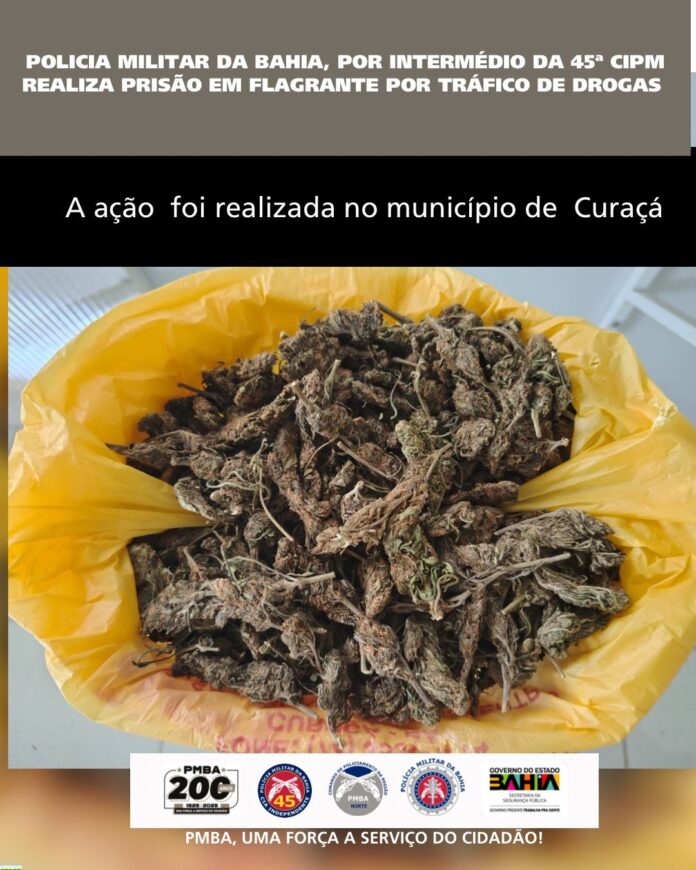 Nesta terça-feira (11), por volta das 10h, a Polícia Militar da Bahia, por meio da 45ª CIPM, realizou uma prisão em flagrante por tráfico de drogas no bairro Vila da Paz, em Curaçá.