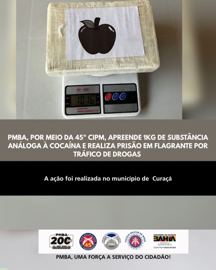 A Polícia Militar da Bahia (PMBA), por intermédio da 45ª Companhia Independente de Polícia Militar (CIPM/Curaçá), realizou, nesta sexta-feira (20), a apreensão de substância análoga à cocaína e a prisão em flagrante de um indivíduo por tráfico de drogas no município de Curaçá.