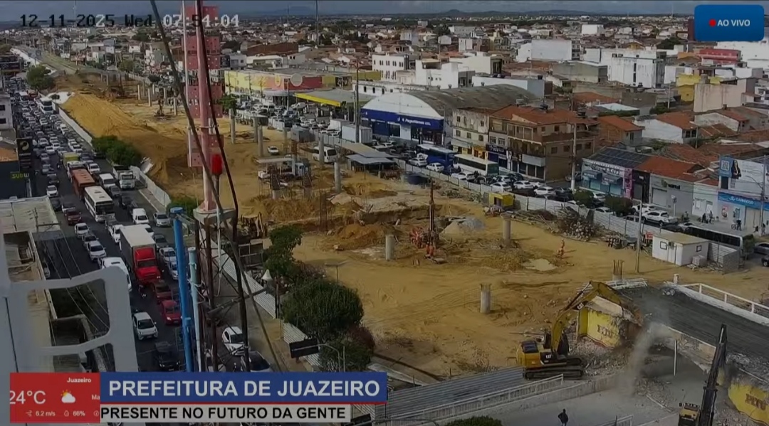 Começou nesta quarta-feira (12) uma nova fase da obra da Travessia Urbana de Juazeiro, com a interdição de um dos pontilhões da Avenida Raul Alves, via de grande fluxo que liga o centro da cidade à Ponte Presidente Dutra. O bloqueio, que deve durar cinco dias, já provoca lentidão e longas filas de veículos nos horários de pico. A reportagem do Nossa Voz esteve no local e conversou com o diretor-presidente da Autarquia Municipal de Trânsito e Transportes (AMTT), Mitonho Vargas, que detalhou as intervenções e reforçou a importância da colaboração de motoristas e pedestres.