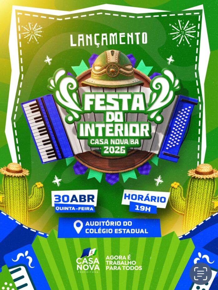 A contagem regressiva já começou! A Prefeitura de Casa Nova convida toda a população para um momento especial que vai marcar o início de uma das maiores celebrações culturais da região: o lançamento oficial da Festa do Interior 2026.