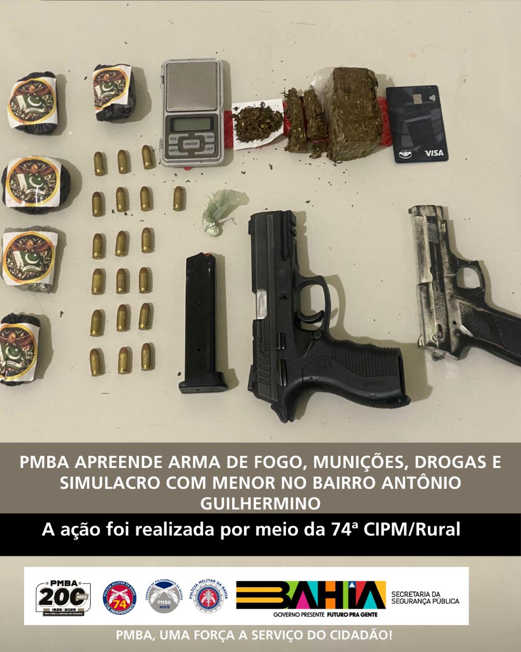 No dia 24, durante patrulhamento tático ostensivo no Bairro Antônio Guilhermino, em Juazeiro visando à manutenção da ordem pública, a guarnição da 74ª CIPM/Rural abordou um menor de 16 anos, encontrando em sua posse o seguinte material: