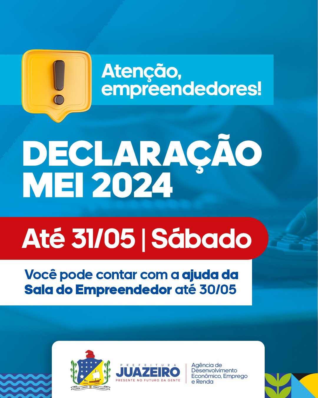 A Prefeitura de Juazeiro, por meio da Agência de Desenvolvimento Econômico, Emprego e Renda (ADEER), alerta os microempreendedores Individuais (MEIs) juazeirenses sobre o prazo para enviarem a Declaração Anual de Faturamento (DASN-SIMEI) referente ao ano de 2024. O período de declaração se encerra dia 31 de maio. Importante salientar que, em Juazeiro, os empreendedores que desejarem o apoio gratuito da Sala do Empreendedor devem ficar atentos; o atendimento será realizado até o dia 30 de maio, sexta-feira, último dia útil antes do prazo final.