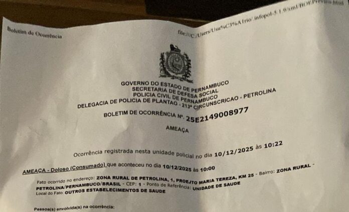 “A Secretaria Municipal de Saúde de Petrolina informa que o caso registrado na Unidade Básica de Saúde do KM 25, na última terça-feira (9), está sendo rigorosamente apurado. A Secretaria reforça que não tolera qualquer forma de violência, desrespeito ou intimidação no ambiente de trabalho ou durante a prestação de serviços aos usuários do Sistema Único de Saúde (SUS).
