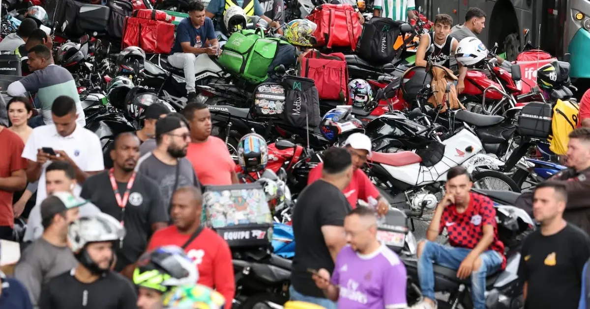 A mobilização foi divulgada nas redes sociais por grupos como “Ratos da Pista” e pelo perfil “Bastidores do Volante”. Na publicação, os organizadores incentivam a adesão dos trabalhadores autônomos. (Fonte: BN) (Foto: Paulo Pinto / Agência Brasil)