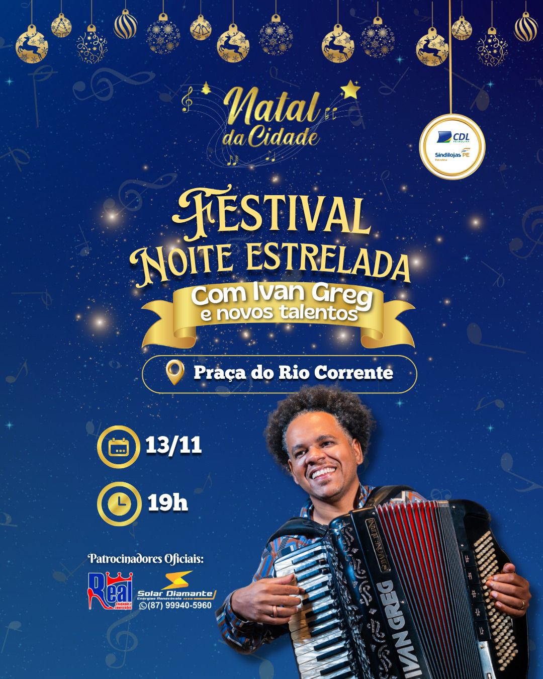 Se você gosta de ouvir boa música e, ao mesmo tempo, apoiar novos talentos musicais de Petrolina, não pode ficar de fora da 1ª edição do Festival Noite Estrelada, que integra as ações da campanha Natal da Cidade, desenvolvida pela CDL Petrolina e o Sindilojas. Será na quinta-feira, 13 de novembro, das 19h às 22h, na praça do Rio Corrente, zona oeste da cidade.