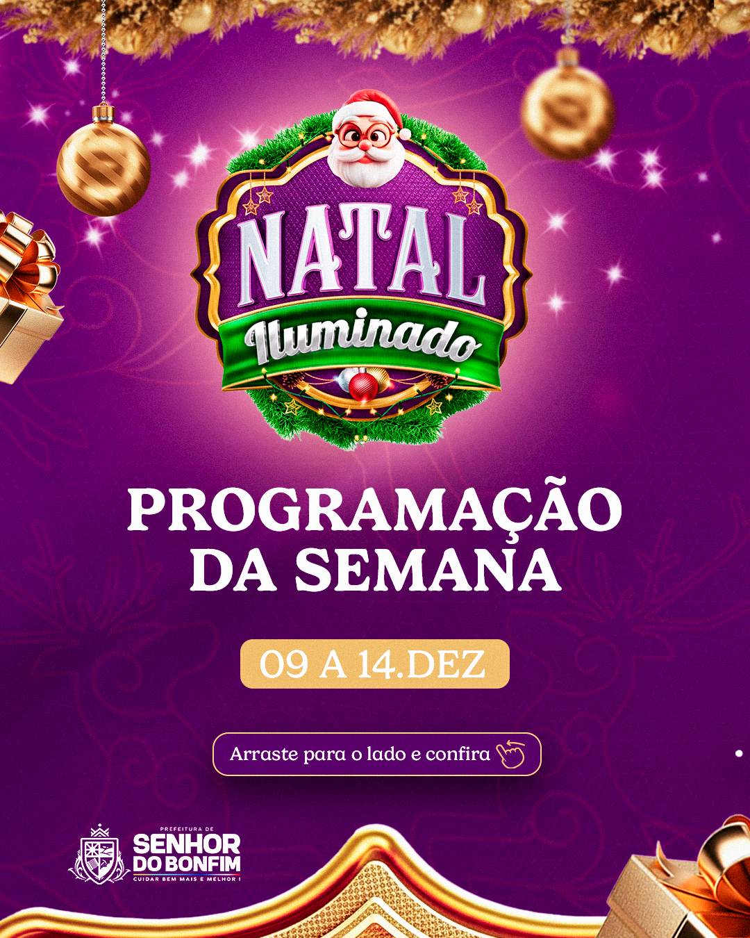 A Prefeitura de Senhor do Bonfim segue investindo numa programação diversificada para o Natal Iluminado, que segue trazendo grande público à Praça Nova do Congresso. A programação cultural da semana, de 9 a 14 de dezembro, inclui apresentações de escolas, projetos sociais, grupos musicais e corais, movimentando todas as noites até domingo.