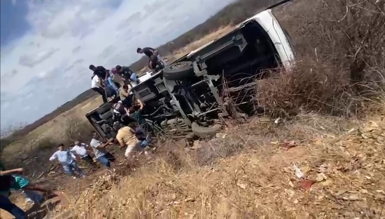 Ônibus do transporte estudantil da Univasf tomba no Campus de Ciências Agrárias; estudantes são atendidos no HU