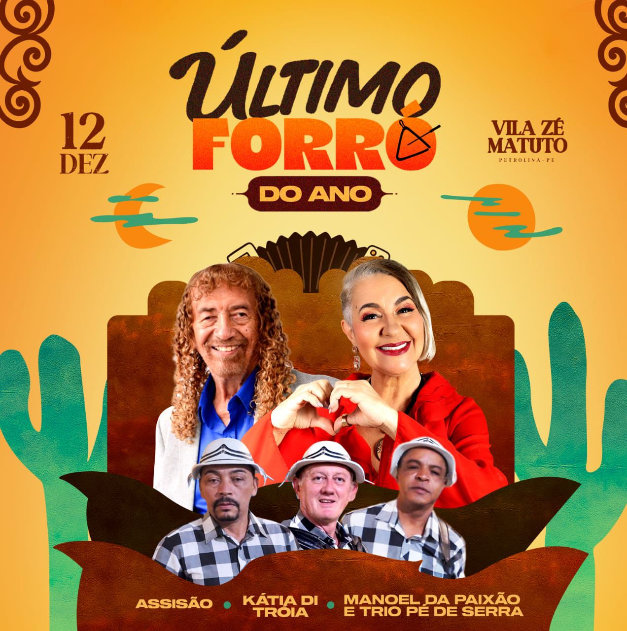 No dia 12 de dezembro, Petrolina se tornará o ponto de encontro das famílias do Sertão para celebrar a primeira edição do Último Forró do Ano, na Vila Zé Matuto. O evento promete reunir gerações em uma noite marcada pelo forró raiz, pela alegria coletiva e pela força da cultura nordestina que atravessa histórias, memórias e territórios.