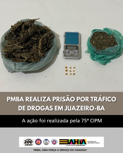 Um homem foi preso suspeito de tráfico de drogas na manhã desta quinta-feira (5), no bairro Tancredo Neves, em Juazeiro, no norte da Bahia. A prisão foi realizada por policiais da 75ª Companhia Independente de Polícia Militar (CIPM), durante rondas ostensivas na região.