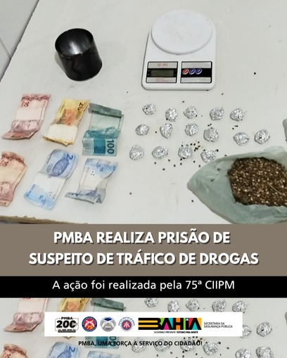 Uma equipe da 75ª Companhia Independente de Polícia Militar (CIPM) realizou, na noite desta segunda-feira (06), a prisão de um indivíduo por suspeita de tráfico de drogas no bairro Itaberaba, em Juazeiro-BA.