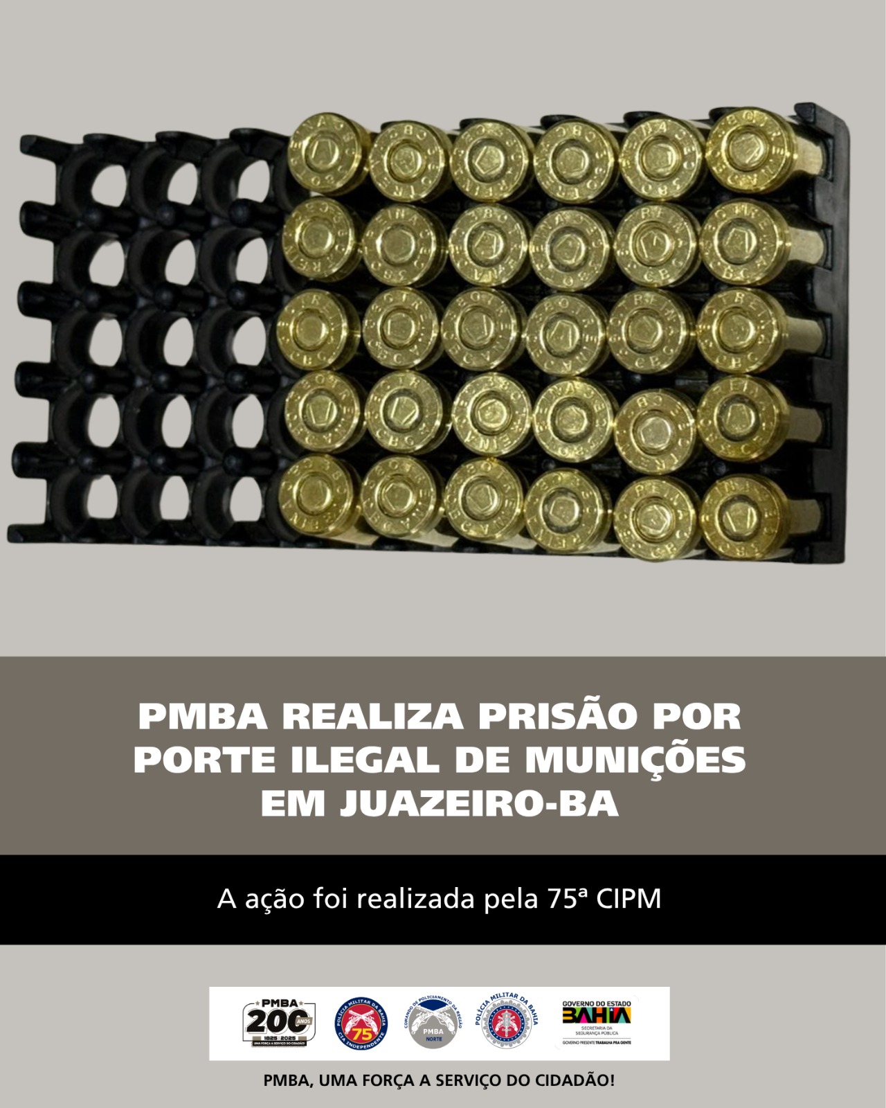 Na madrugada deste domingo (19), policiais militares da 75ª Companhia Independente de Polícia Militar (CIPM) prenderam um homem por porte ilegal de munição no bairro Itaberaba, em Juazeiro, no norte da Bahia.