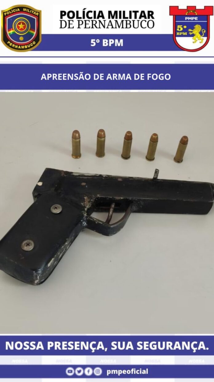 Policiais militares do 5º BPM apreenderam uma arma de fogo na manhã deste domingo (19), no bairro Portal da Cidade, em Petrolina, no Sertão de Pernambuco.