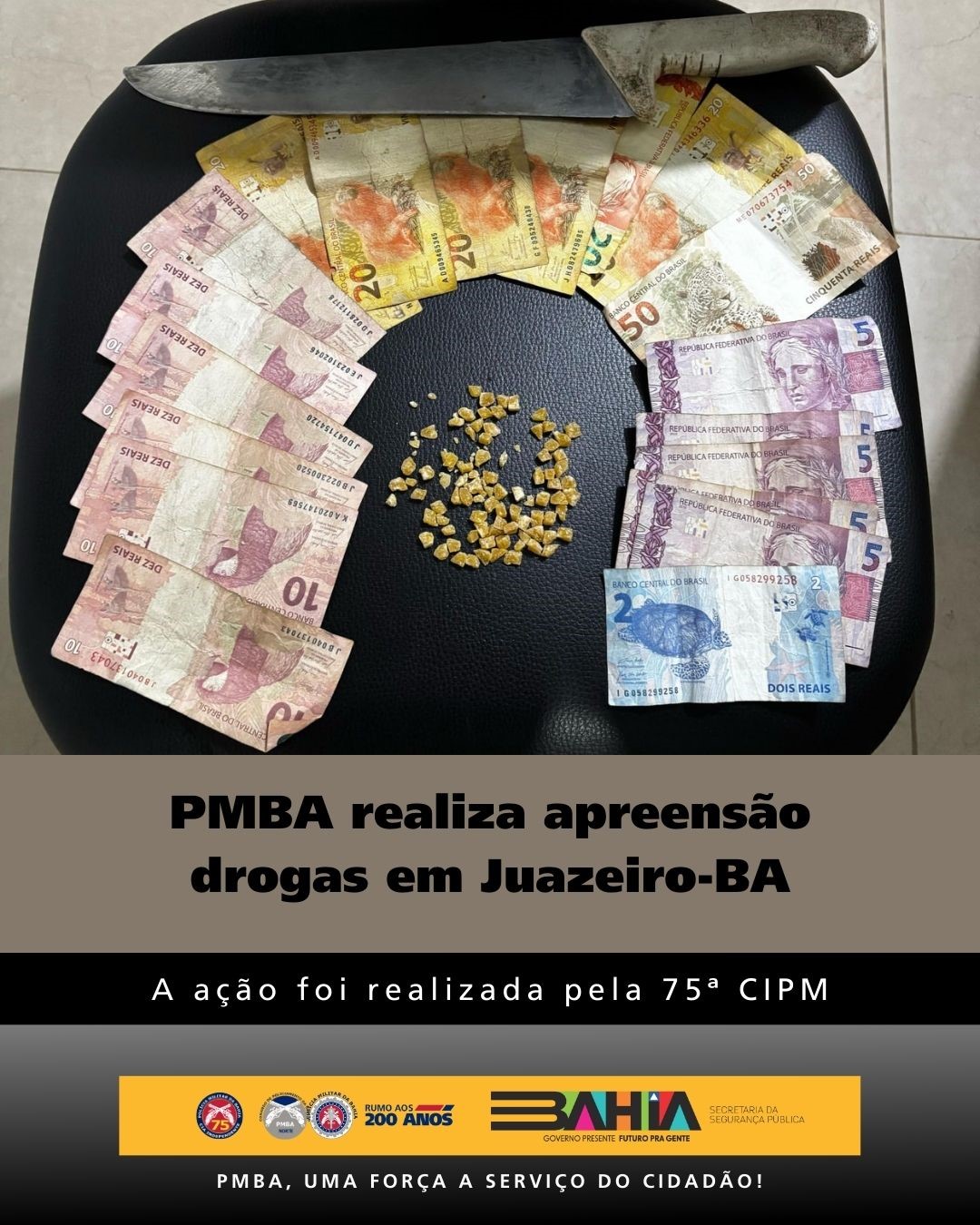 Já na noite de terça-feira (15), durante rondas no bairro Alto do Cruzeiro, uma equipe do Motociclismo 75 avistou um suspeito que fugiu ao receber ordem de parada. No local onde ele estava, foram encontrados 80 pedras de substância semelhante ao crack, o valor de R$ 257 em espécie e uma faca tipo peixeira.