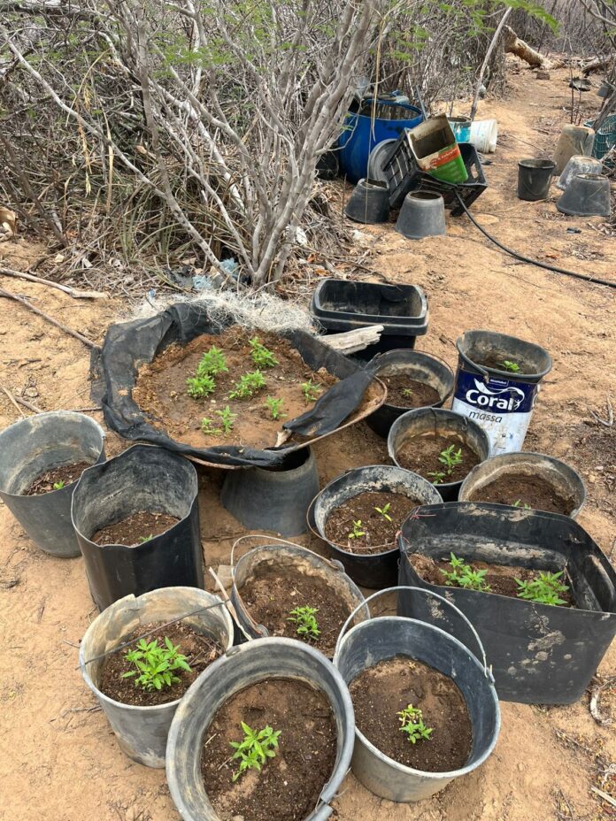 No local, foi encontrada uma sementeira contendo diversos pés da erva, que estavam sendo cultivados com a finalidade de posterior plantio em roça. Todo o material apreendido foi devidamente destruído no próprio local, sendo preservada apenas uma amostra, a qual foi recolhida e apresentada à Delegacia de Polícia para a adoção das providências cabíveis pela Polícia Judiciária.