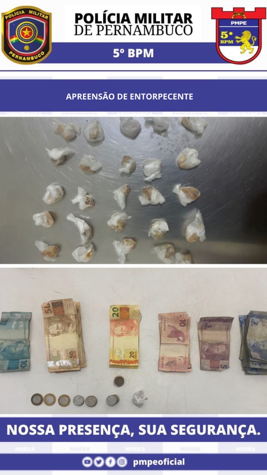 Policiais do 5°BPM prendem homem por tráfico de drogas no centro de Petrolina