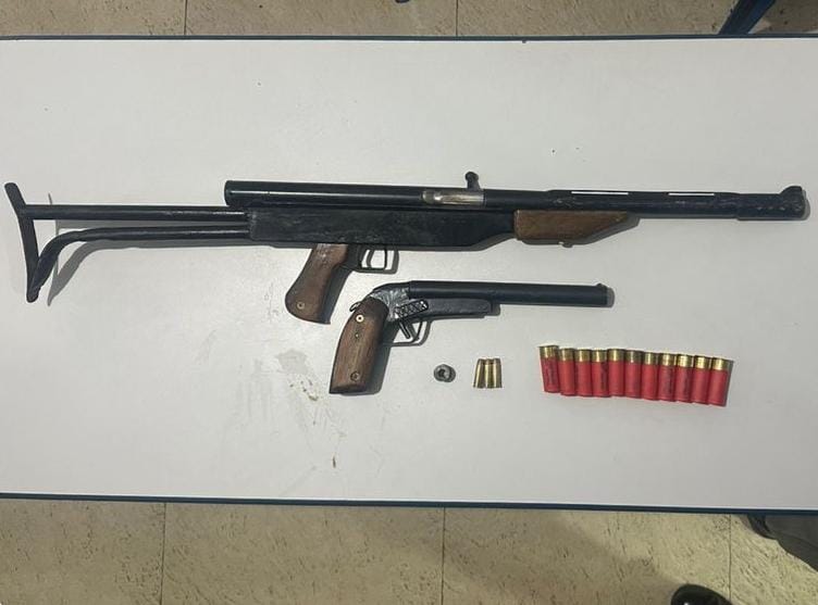 Durante a abordagem, os policiais apreenderam duas armas de fogo de fabricação artesanal, ambas de calibre 12, além de uma adaptação de calibre 12 para 38. Também foram encontradas munições intactas, sendo 11 de calibre 12 e três de calibre 38.