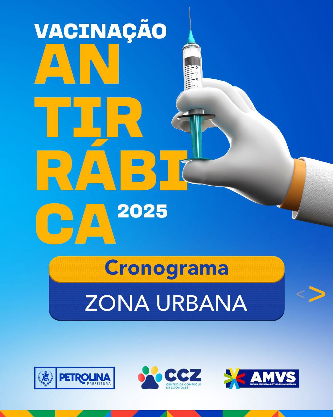 A Prefeitura de Petrolina realizou no sábado (01) o Dia D de Vacinação antirrábica, voltado à cães e gatos a partir dos três meses de vida. Para atender a demanda, foram montados seis polos de vacinação, 7.201 animais foram protegidos contra a raiva. A meta na cidade é proteger 61 mil animais até dezembro.