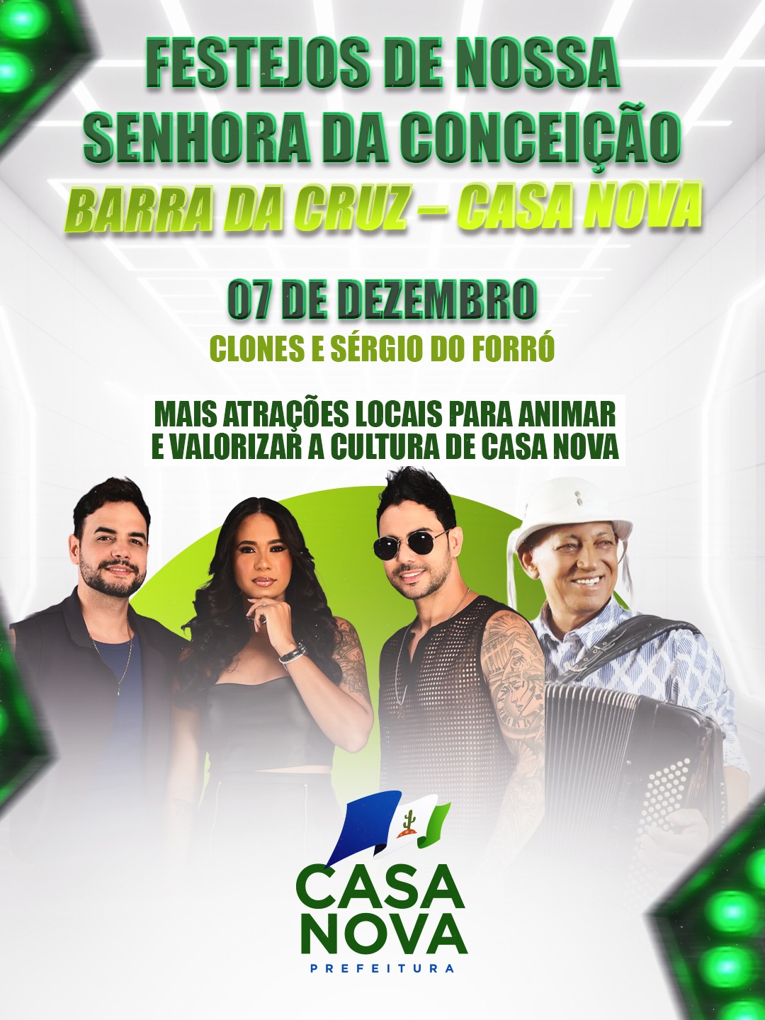 As comunidades de Bem Bom e Barra da Cruz, no interior de Casa Nova, estão prestes a viver dias de celebração em homenagem a Nossa Senhora da Conceição. A Prefeitura Municipal preparou uma programação especial que promete movimentar a região com música, devoção e alegria.