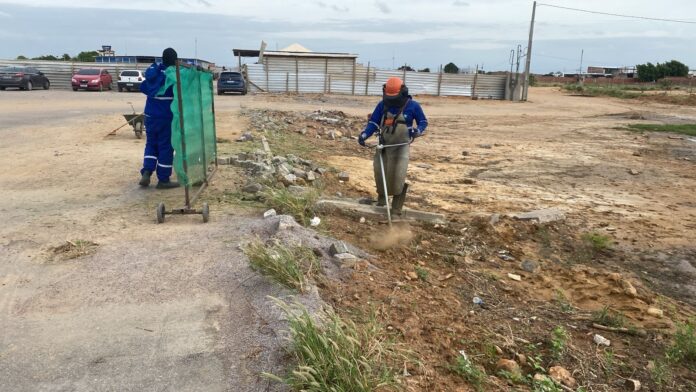 Já no bairro Cosme e Damião, o pátio de eventos recebeu esta semana, uma força-tarefa também com os serviços de capinação, varrição, roçagem, remoção de resíduos, limpeza mecanizada e pintura. As intervenções contemplaram os acessos e toda a área onde será realizado o lançamento da pedra fundamental do Hospital de Olhos Dr. Altino Ventura. Ao todo, 15 trabalhadores estiveram envolvidos na ação, assegurando a preparação do espaço para o evento.