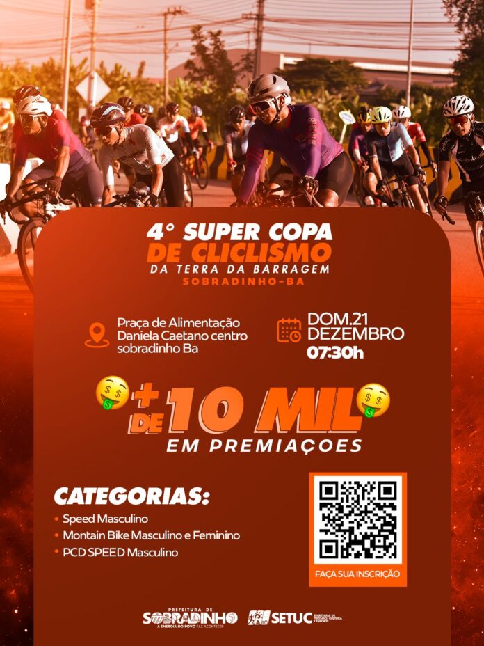 A Super Copa reunirá atletas de Sobradinho, da região e de diversos estados, movimentando o cenário esportivo local e fortalecendo o calendário de eventos ciclísticos do Nordeste. A edição deste ano traz um atrativo especial: mais de R$ 10 mil em premiações, distribuídas entre as categorias Speed Masculino, Mountain Bike Masculino e Feminino e PCD Speed Masculino.