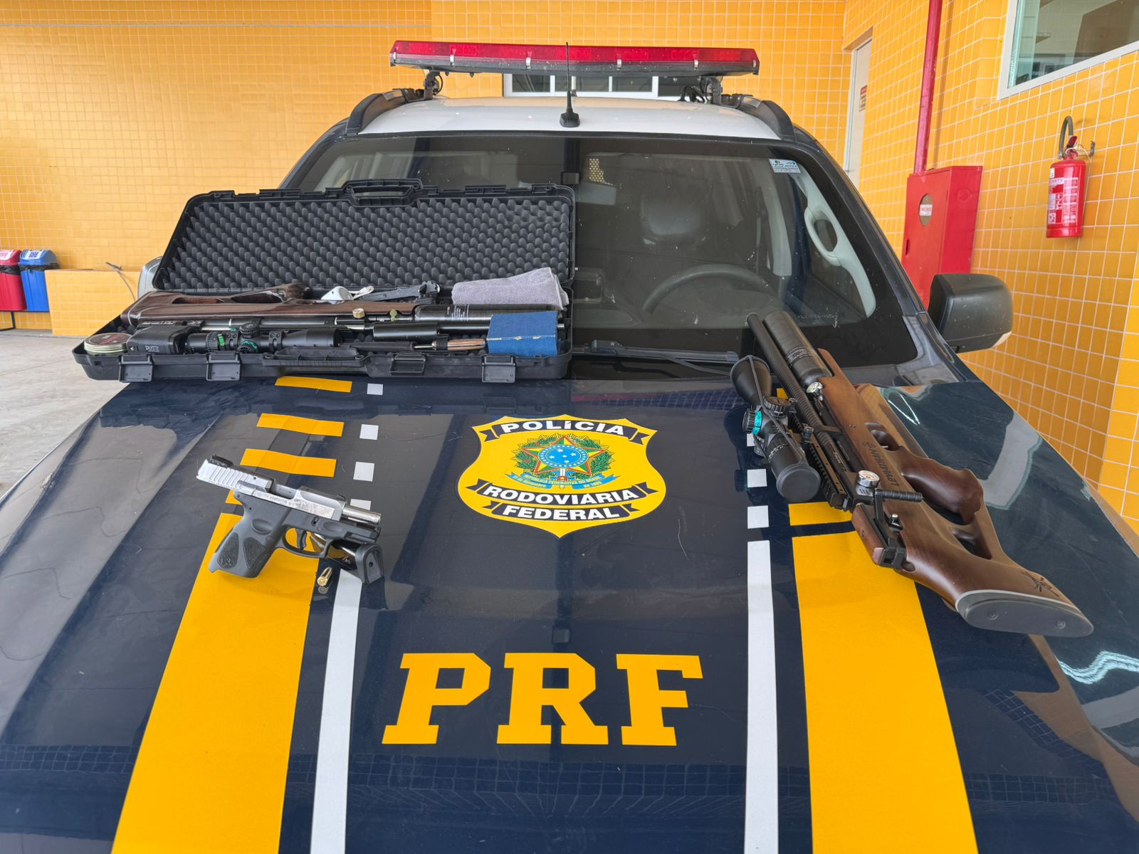 Ao verificar o veículo, foram encontradas duas espingardas de pressão de calibre permitido, o que não configura crime.