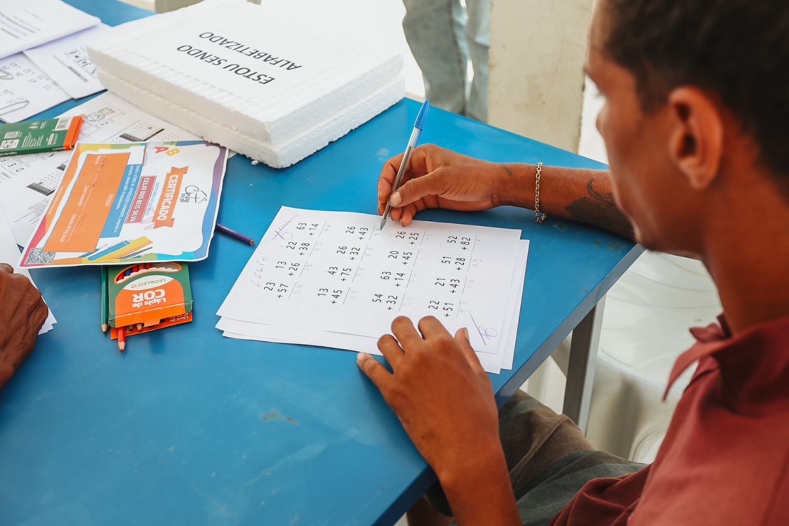 De acordo com Trajano Lino, o certificado representa mais do que um documento formal. “Os que mais frequentam é que recebem um certificado de alfabetização. Em seis meses, a gente dá o direito de entregar o certificado a cada um deles. Eu coloco nesse certificado um ajuste maior para que eles possam trabalhar mais ainda no letramento”, explica o educador social.