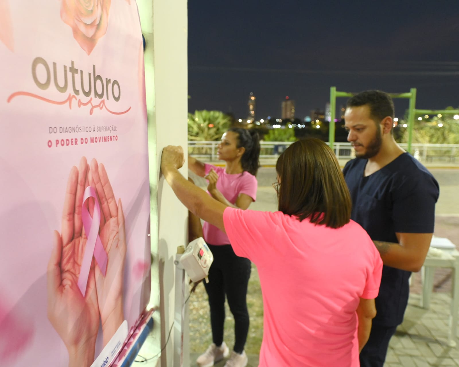 A ação, que aconteceu nesta segunda-feira (13), fez parte da programação especial da Secretaria Municipal de Saúde (Sesau) em alusão à campanha Outubro Rosa, reunindo dezenas de mulheres em uma noite voltada ao bem-estar e à conscientização. O cenário não poderia ser mais acolhedor: música, alegria e muitas mulheres vestidas de rosa, celebrando a vida e o poder do cuidado com a saúde.