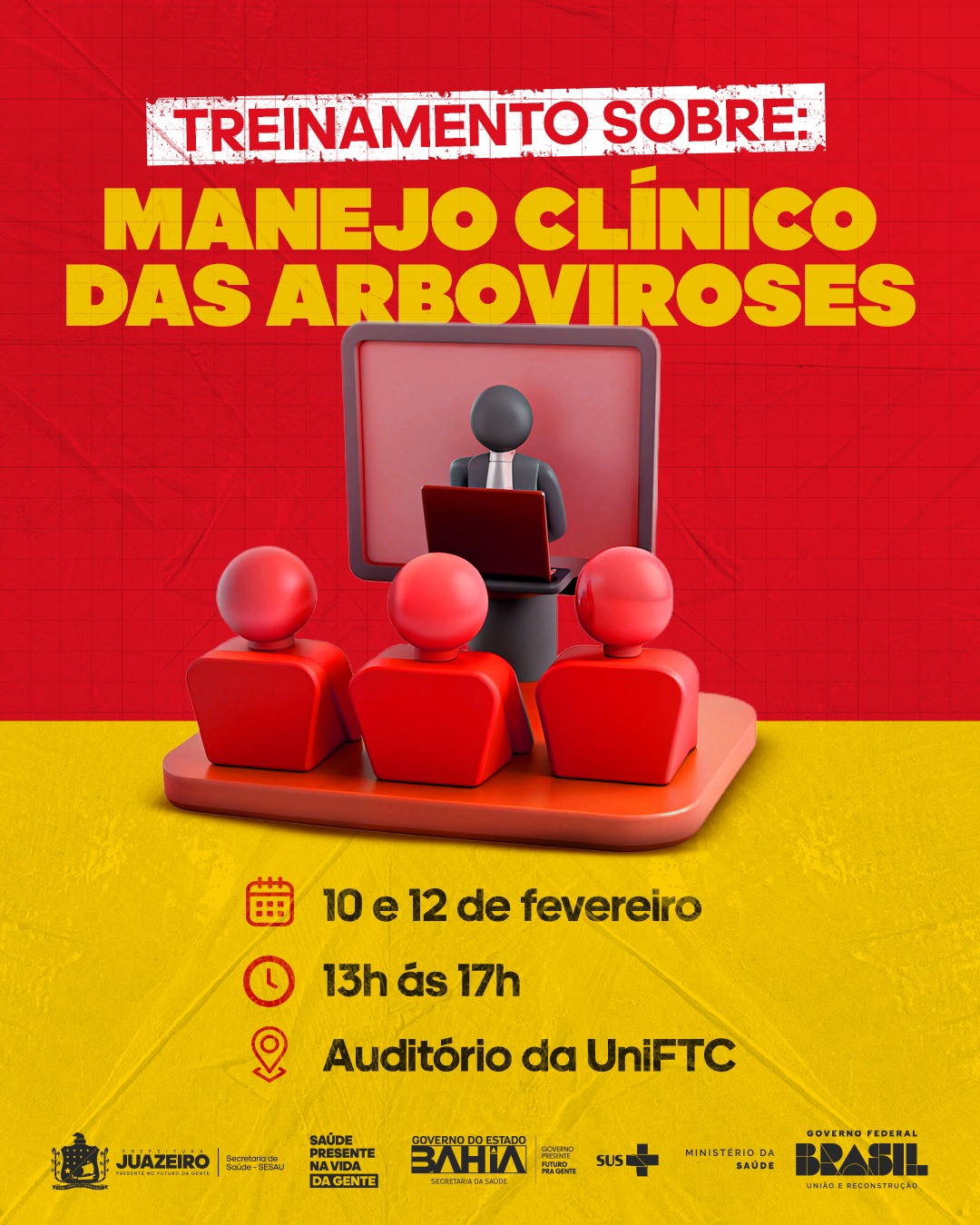 O treinamento contará com a participação do médico infectologista Dr. Washington Dantas, além da equipe técnica da Vigilância das Arboviroses, que irá apresentar orientações atualizadas sobre o cenário epidemiológico local, fluxos de notificação, estratégias de vigilância e enfrentamento das arboviroses em Juazeiro.